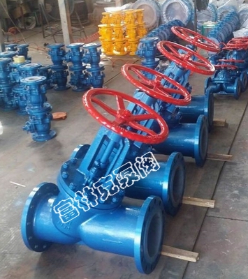 富林克J45F46直流式衬氟截止阀专用于控制强腐蚀性介质,阀体内腔表面覆有可供选择的各种氟塑料,具有强度高、耐腐蚀性能好的特点。适用在-20℃~150℃的各种浓度的王水、硫酸、盐酸、氢氟酸和各种有机酸、强酸、强氧化剂,FEP还适用于各种浓度的强碱有机溶剂以及其它腐蚀性气体、液体介质的管路上使用。