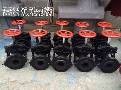 当顺转手轮时,使大小阀杆同时带动上下闸板、压缩管套进行关闭,反之即行开启。这样,闸板在导柱之间上下往复完成阀门开闭工作。因橡胶管套承受力小,所以在开闭时,操作人员旋转手轮只要感到适当抵触,均达到开闭极点,切勿尽力多人辅助,禁用其它工具开闭